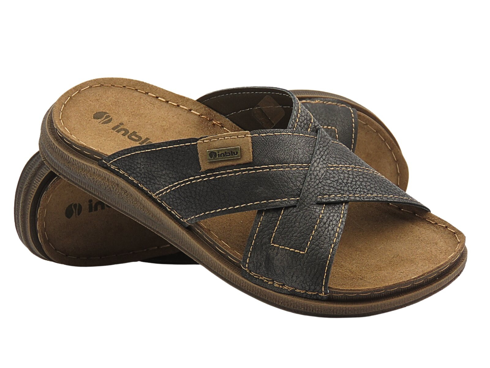 Pohodlné pánské kožené pantofle černé INBLU VE-09