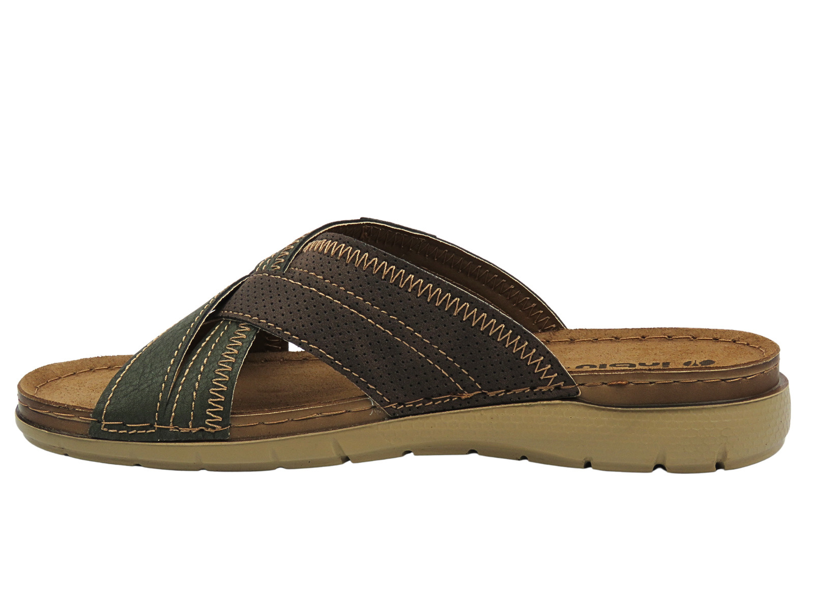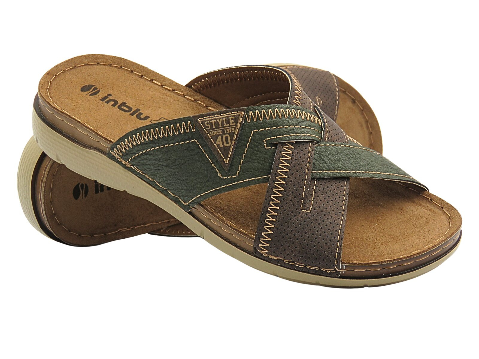 Pánské pantofle INBLU VI-11 v hnědo-zelené barvě jsou ideální volbou pro teplé dny, kombinující pohodlí, styl a ekologické materiály.