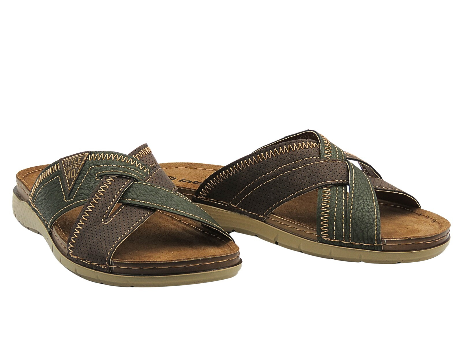 Pánské pantofle INBLU VI-11 – hnědo-zelené