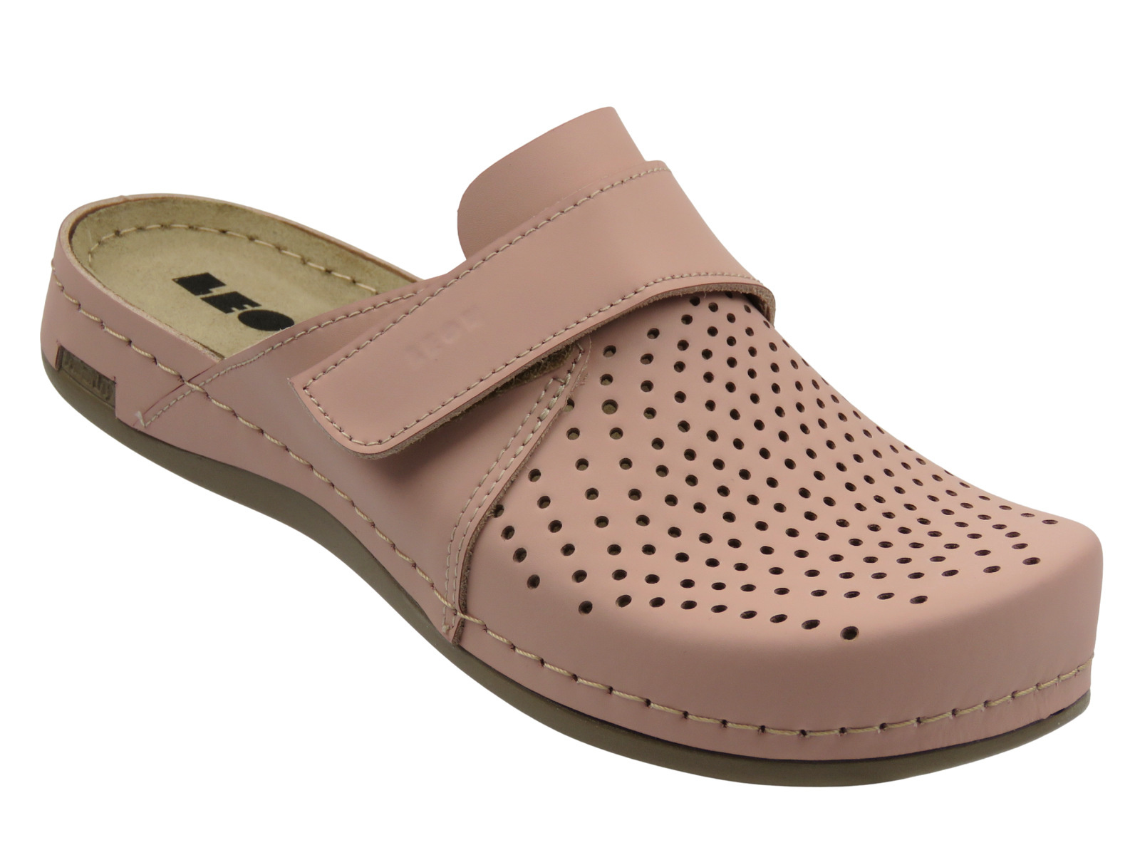 Dámské kožené, perforované pantofle Leon 970, růžové