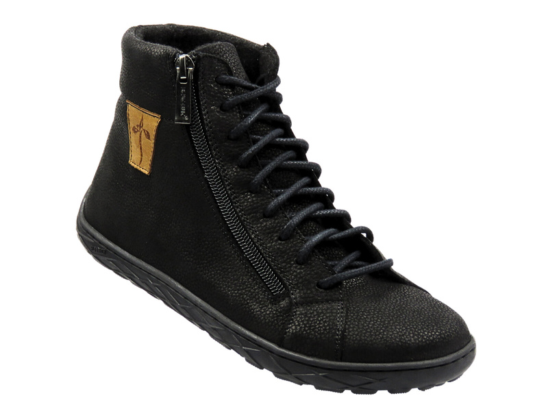 Model Nika Komfort 1443 jsou barefoot boty s klasickým vzhledem a moderním komfortem, vyrobené z přírodní embosované kůže. Jejich zrnitá textura a matný povrch dodávají charakter, zatímco černá barva zajišťuje nadčasovou univerzálnost.