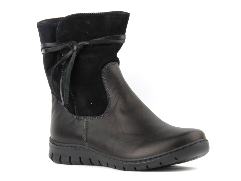 Dámské kotníkové boty renomované polské značky Helios Komfort jsou vyrobeny z kombinace kvalitní přírodní lícové a semišové kůže v odstínu černé. Vnitřek je zateplen obuvnickým fleecem . Zip umožňuje rychlé a pohodlné obouvání. Silná podrážka dobře izoluje od země a má protiskluzové vlastnosti.