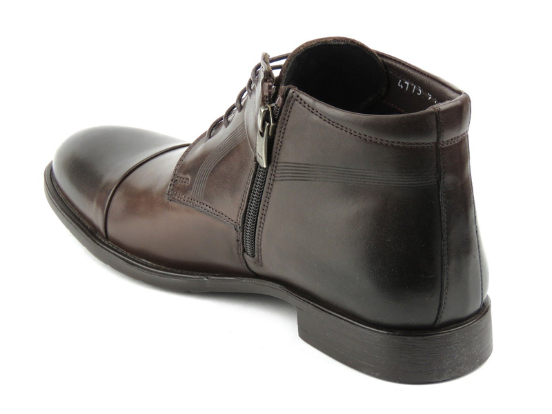 Pánské boty renomované polské značky Badura jsou vyrobeny z vysoce kvalitní, sytě hnědé, celozrnné přírodní kůže . Vnitřek je jemně zateplen jemnou látkou - felpa. Zip umožňuje rychlé a pohodlné nazouvání a tkaničky zajišťují dobré padnutí . Vysoce kvalitní podrážka je odolná a lehká . Elegantní kozačky Badura jsou jemně zdobené prošíváním.