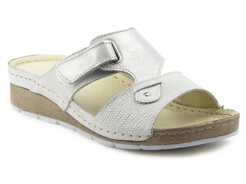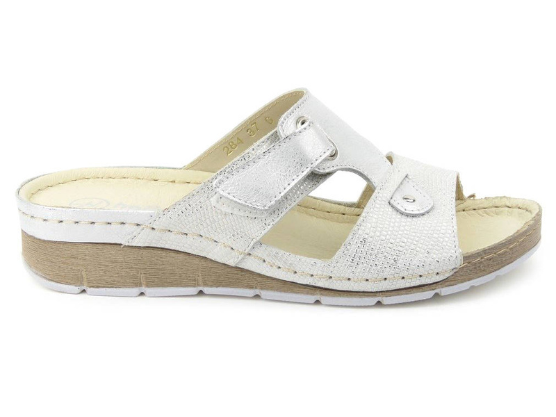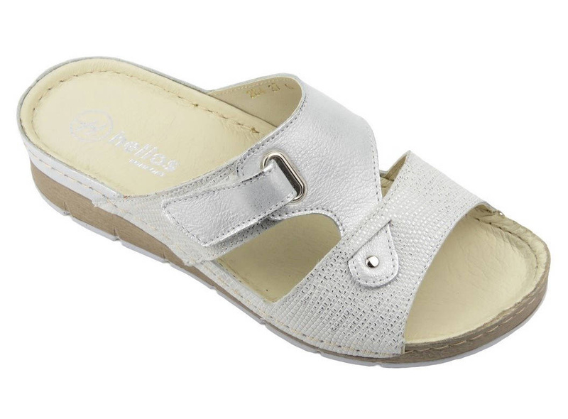 Měkké dámské kožené žabky - HELIOS Komfort 284, stříbrné
