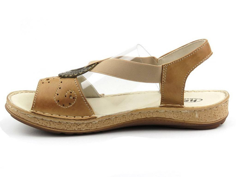 Dámské sandály renomované polské značky Helios jsou vyrobeny z vysoce kvalitní celozrnné přírodní kůže . Kožená podšívka zajišťuje vysoký komfort. Díky elastickým páskům se obuv přizpůsobí noze a snadno se nazouvá. Podrážka je lehká a pružná . Svršek zdobí skvostná spona v aztéckém stylu.