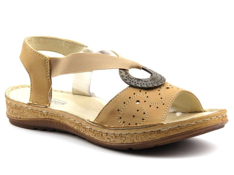 Dámské kožené sandály s přezkou - Helios Komfort 672, světle hnědé