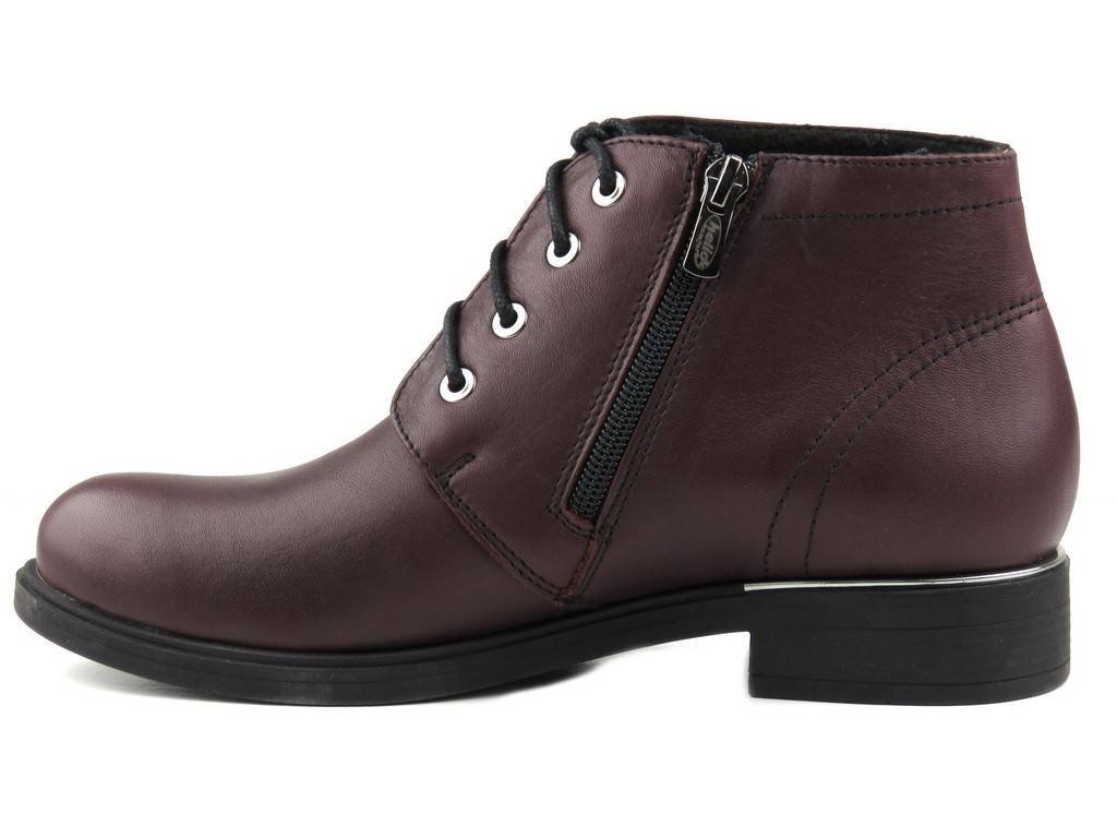 Dámské kotníkové boty renomované polské značky Helios jsou vyrobeny z kvalitní celozrnné přírodní kůže . Vnitřek je zateplen obuvnickým fleecem . Zip umožňuje rychlé a pohodlné nazouvání a díky úpravě tkaniček lze model upravit na různé šířky chodidla. Termogumová podrážka dobře přilne k zemi. Klasický střih je decentně zdoben stříbrným lemem nad patou.