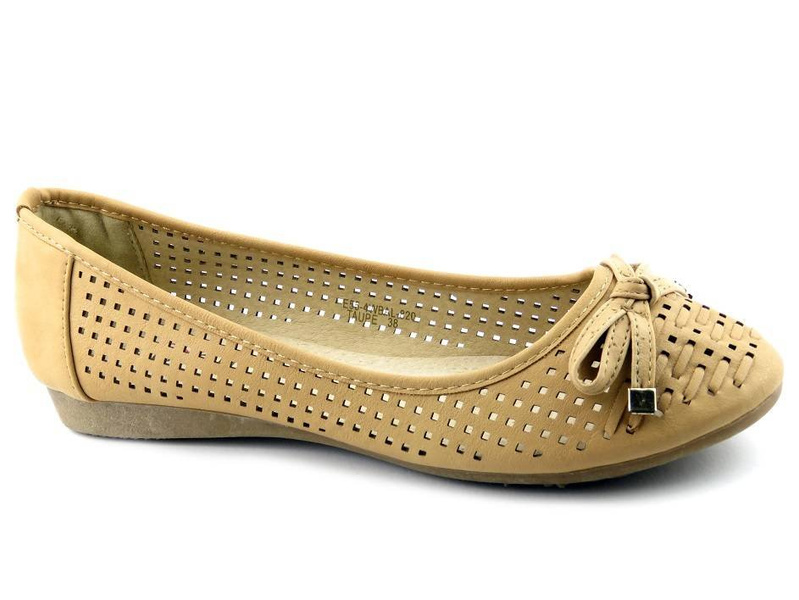 Dámské prolamované balerínky s mašlí - EVENTO E55-4WBAL-820, béžová
