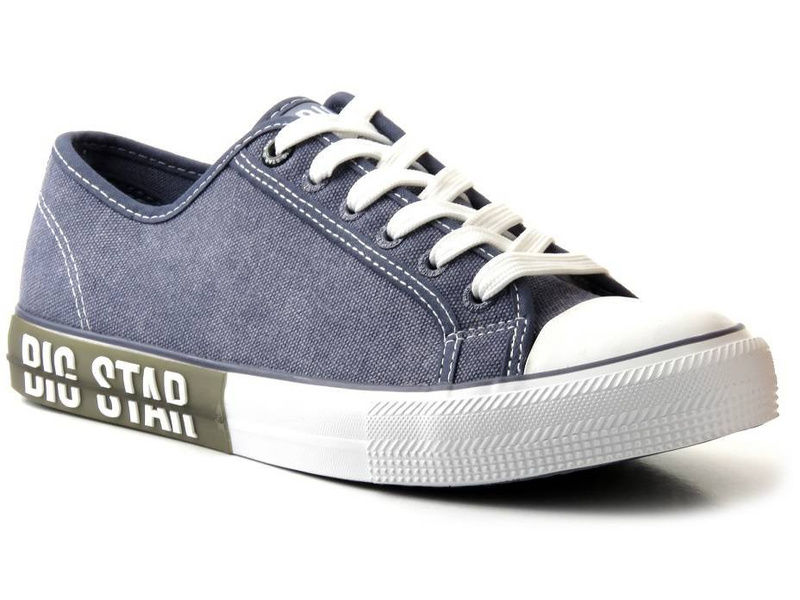 Pánské tenisky renomované zahraniční značky Big Star jsou vyrobeny z látky denimové barvy . Vnitřek je potažen měkkou látkou, díky čemuž jsou boty velmi pohodlné. Ventilační otvory přivádějí vzduch do bot. Model je nasazen na silnou gumovou podrážku. Špička je navíc potažena gumou, která chrání prsty a chrání tenisky před oděrem. Logo značky na jazyku dodává modelu jedinečnost.