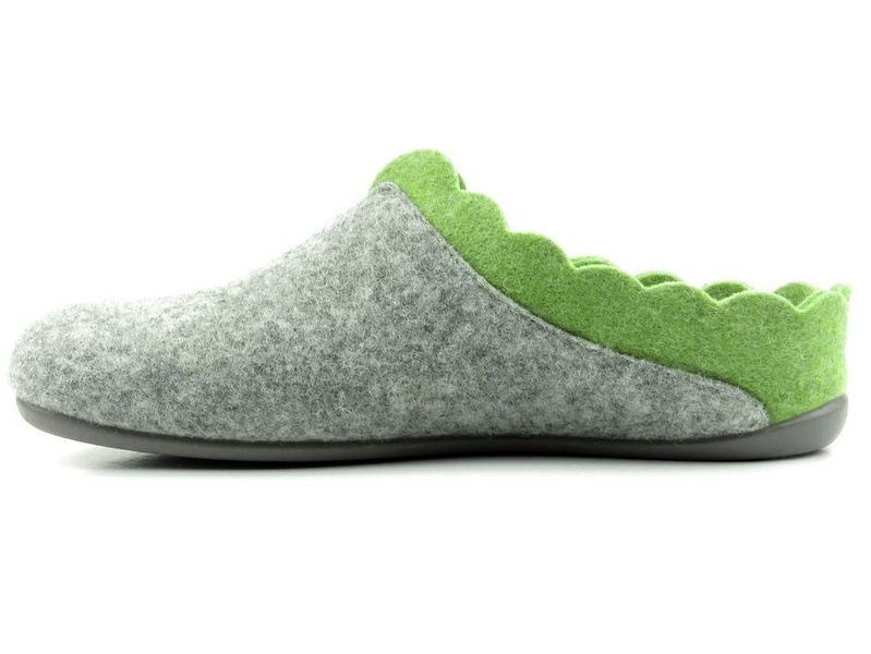 Teplé plstěné dámské pantofle - Manitu 320697, šedé se zelenou