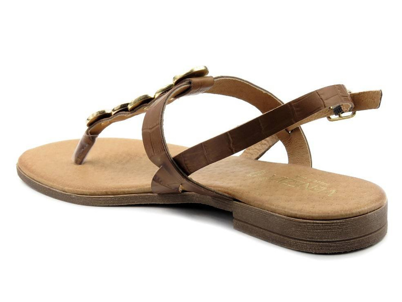 Dámské sandály, žabky se zlatými pláty - VENEZIA ANT 7501, hnědé