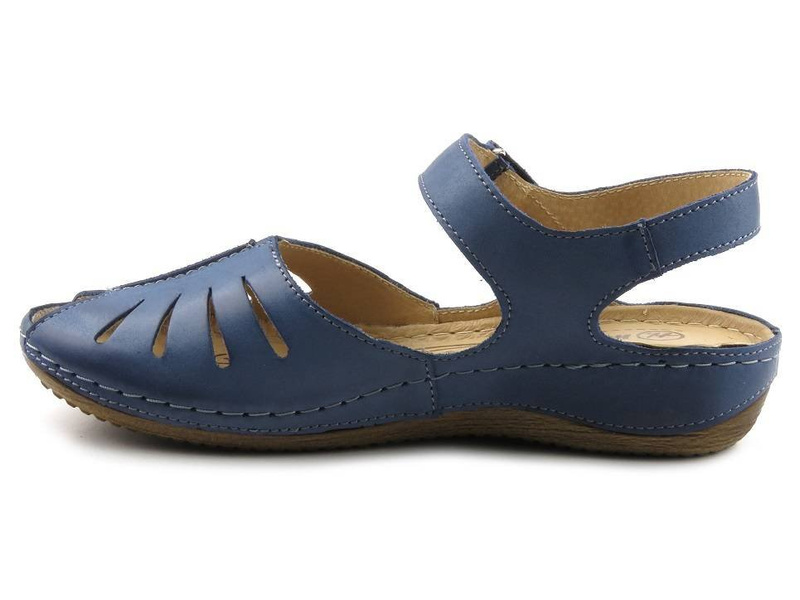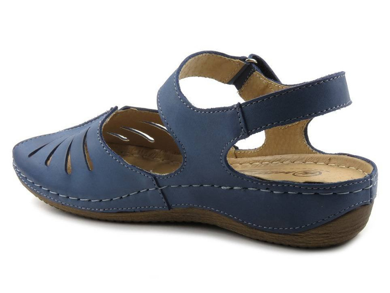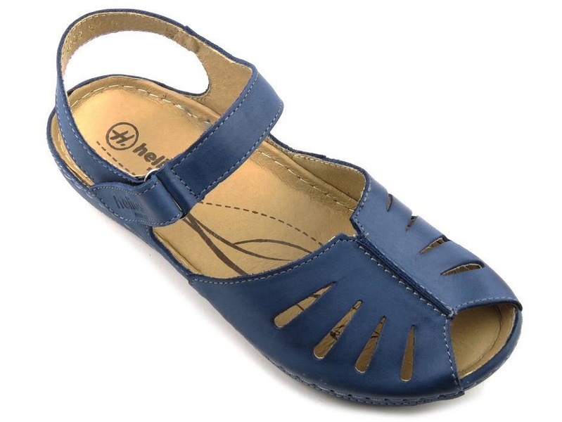 Dámské sandály renomované polské značky Helios jsou vyrobeny z vysoce kvalitní celozrnné přírodní kůže . Měkká kožená podšívka zajišťuje vysoký komfort pro nohy. Pod vložkou je měkká SOFT houbička . Zapínání na suchý zip umožňuje rychlé a pohodlné nazouvání obuvi. Podrážka je lehká a pružná . Prolamovaný svršek poskytuje prodyšnost a dodává botám originální vzhled. Námořnická modrá barva sandálů Helios se bude hodit k mnoha stylům.