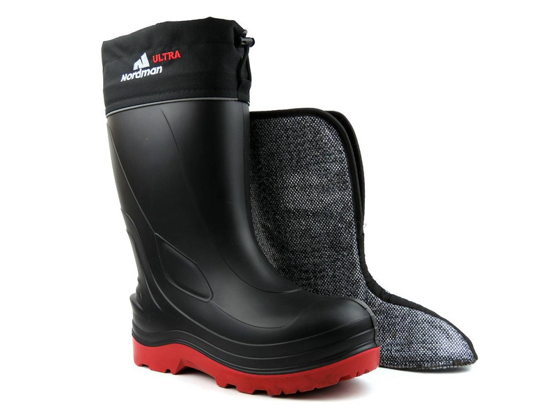 Holínky vyrobila respektovaná značka Nordman . Vnější materiál je otěruvzdorná pryž. Vnitřek je pokryt hustou hřejivou kožešinou . Model je navíc vybaven vyjímatelnou ponožkou , která dodatečně chrání vaše nohy před mrazem. Plstěná vložka má protiplísňové a antibakteriální vlastnosti . Provázek umožňuje utáhnout svršek a přiblížit ho k noze. Podešev díky svému designu zabraňuje nekontrolovanému uklouznutí. Obuv je voděodolná .