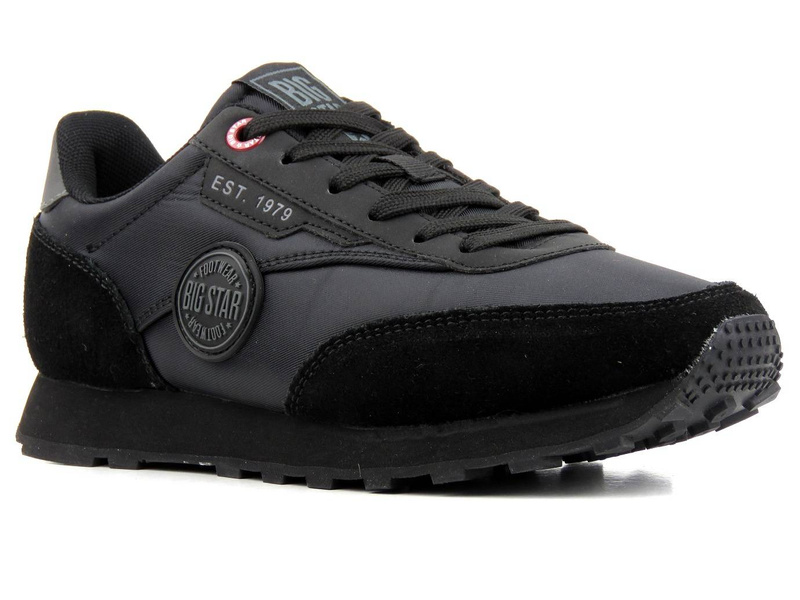 Dámské sportovní boty renomované značky Big Star jsou vyrobeny z odolného materiálu a přírodní semišové kůže. Vnitřek je potažen měkkou látkou , díky které jsou boty velmi pohodlné. Model je vybaven vložkou Memory Foam (tvarová paměťová pěna). Tato vložka perfektně sedí a pamatuje si tvar naší nohy. Je také odolný proti deformaci a skvěle tlumí nárazy. Tenisky Big Star jsou obuté na silné, protiskluzové podrážce, pokryté cvočky. Podešev také kryje špičku, zpevňuje ji a chrání před oděrem. Logo značky je umístěno na jazyku a svršku.