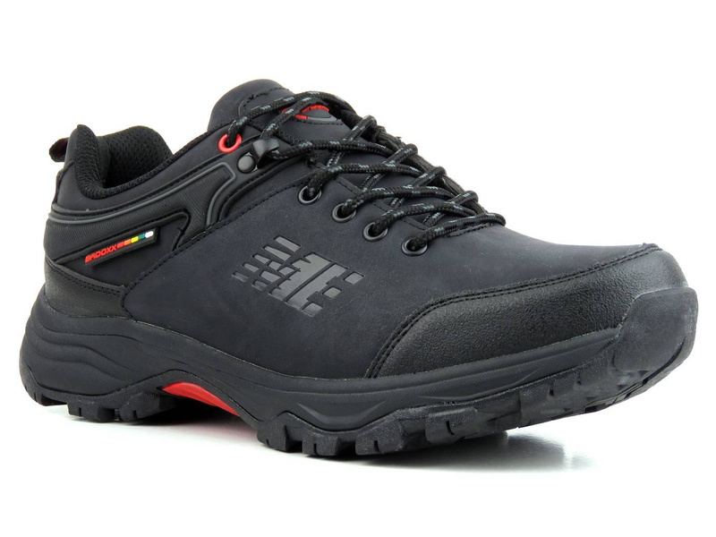 Pánské trekingové kalhoty Badoxx jsou z vnější strany vyrobeny z černé ekologické kůže . Podšívka je vyrobena z měkkého materiálu. Nos byl dodatečně zesílen. Tkaničky upravují svršek a udržují jeho vhodnou šířku. Silná, protiskluzová podrážka stabilizuje a tlumí chodidlo při chůzi.