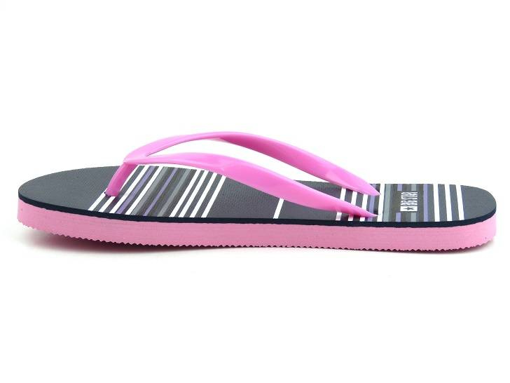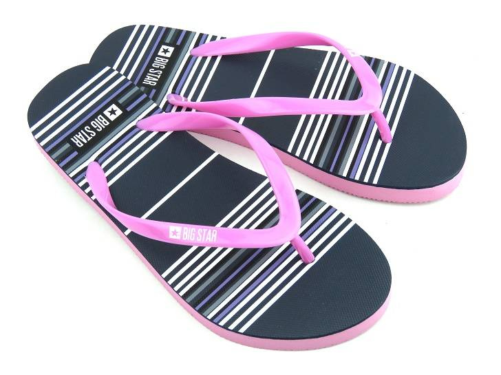 Sportovní žabky od renomované značky Big Star jsou pohodlné, lehké a na pohled módní . Růžové gumové pásky drží nohu. Pohodlnou stélku zdobí pruhy na tmavě modrém podkladu. Podešev z měkké a pružné pěny zajišťuje vysoký komfort pro nohy. Logo značky na řemínku je decentní.