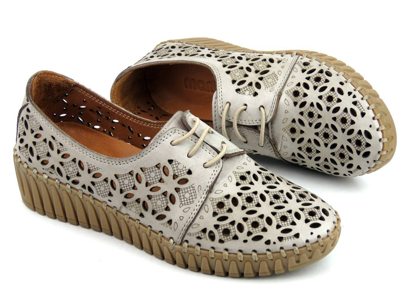 Dámské prolamované boty z přírodní kůže - MANITU 850021, béžová
