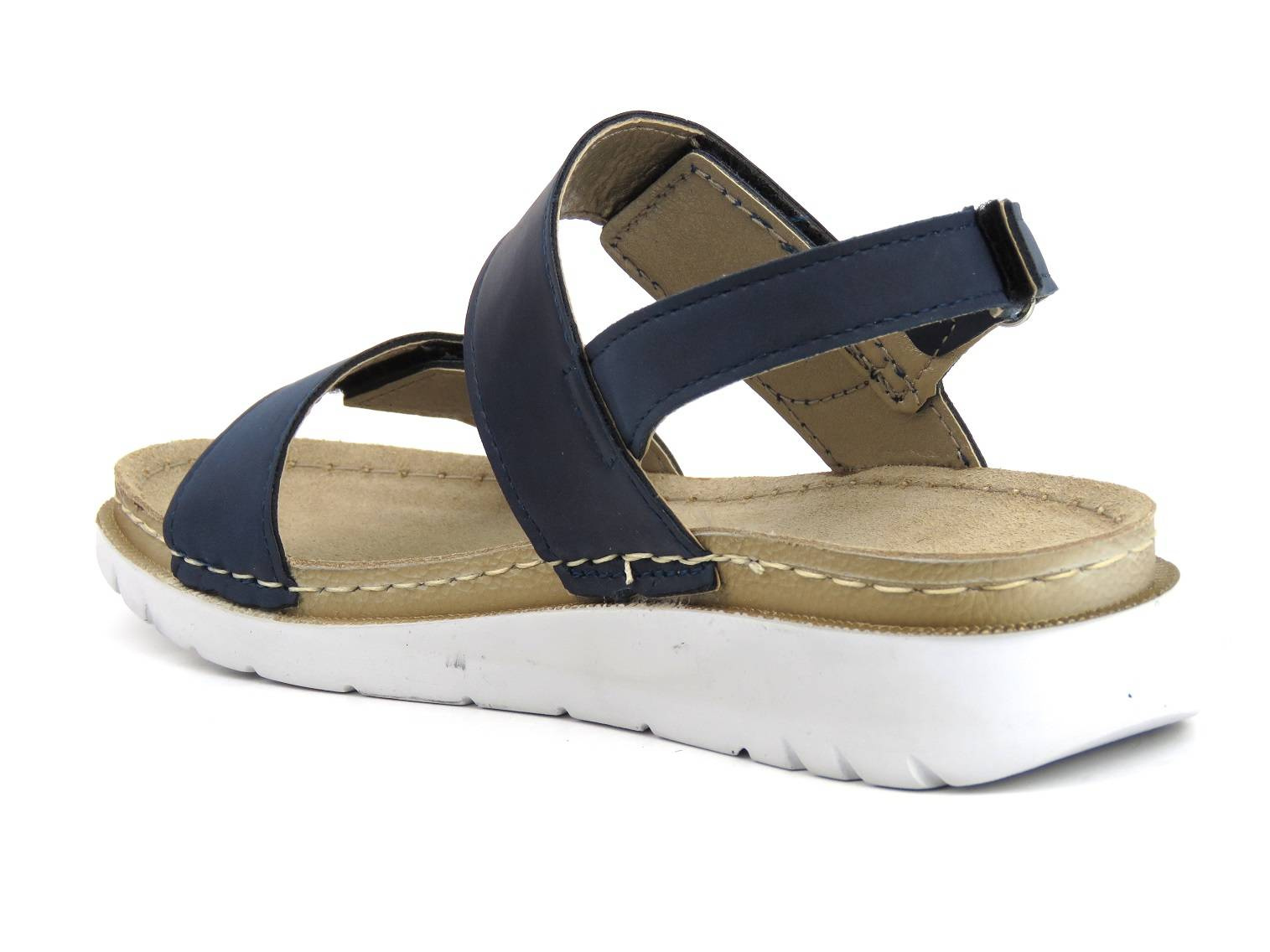 Dámské sandály renomované značky Inblu jsou z vnější strany vyrobeny z tmavě modré ekologické kůže .