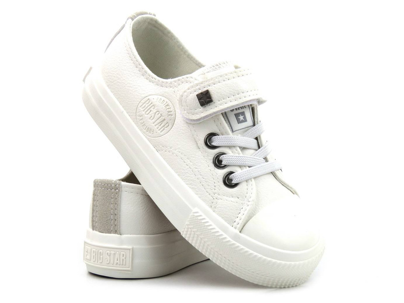 Tenisky renomované značky Big Star jsou vyrobeny z ekologické kůže . Podšívka je podšitá měkkou látkou. Zapínání na suchý zip umožňuje rychlé nazutí bot. Design je vybaven také pružnými gumičkami, které se přizpůsobí dětské noze. Pryžová špička účinně chrání prsty. Celé je to namontované na tlusté, pružné podrážce. Bílé tenisky mají logo značky na jazyku a svršku.