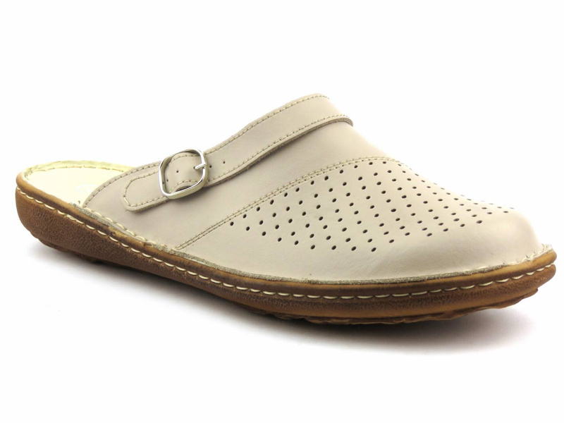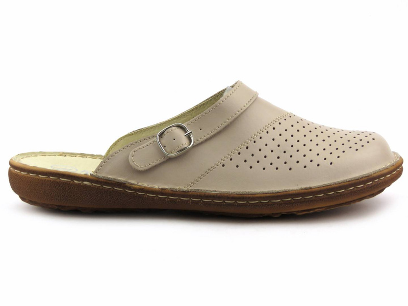 Dámské kožené žabky polské značky Helios Komfort 654 béžové barvy