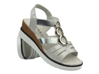 Kožené dámské sandály na jemném klínku - Nika Komfort L25-619, stříbrné
